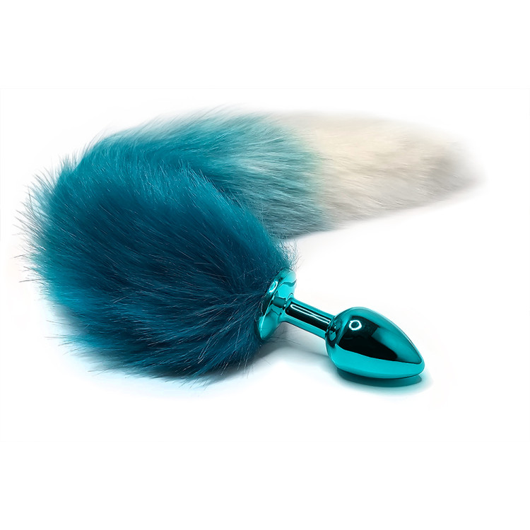 BQS - Buttplug med blå plugg og gradert blå og hvit hale