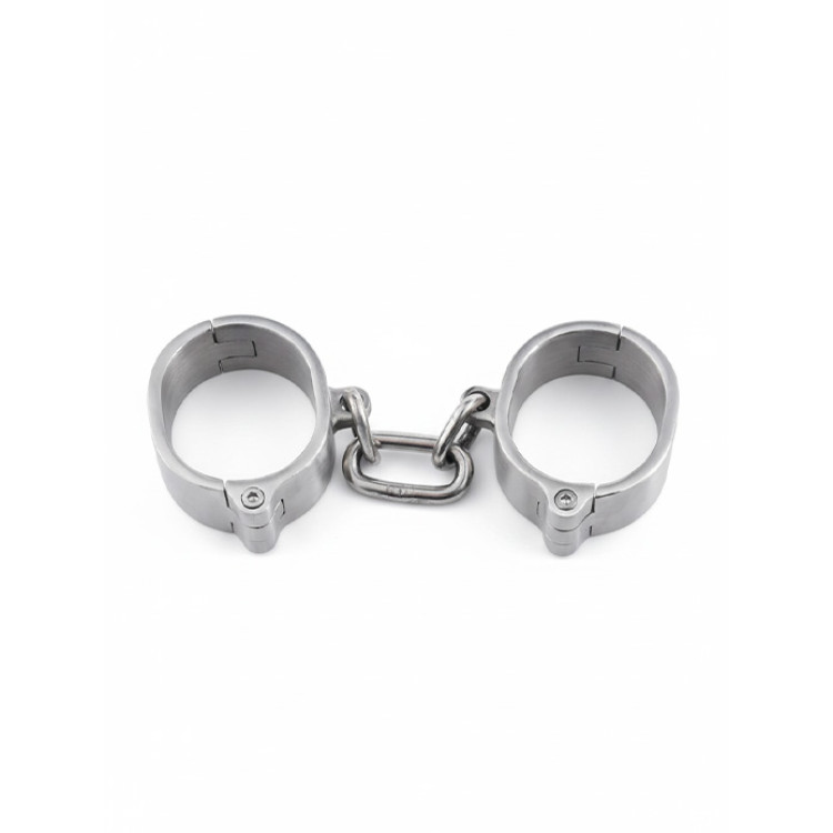 Mansjettene har avrundede kanter som gir bedre komfort mot huden, samtidig som de beholder et stramt og industrielt preg. Hver mansjett låses og åpnes med medfølgende unbrakonøkkel, noe som gir et mer kontrollert låsesystem enn tradisjonelle nøkler. Kjettingen mellom mansjettene er sveiset for ekstra styrke og stabilitet. Her kommer du deg virkelig ikke unna.