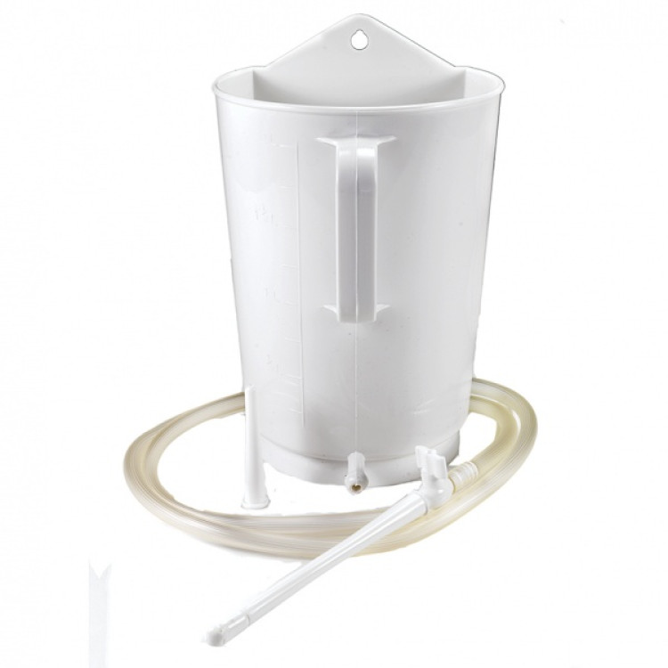 Utskyllingssett i plast. Beholderen rommer 2 liter væske. Inneholder væskebeholder med utløpsrør, slange, og to utskiftbare hoder. For medisinsk lek! Farge: hvit.