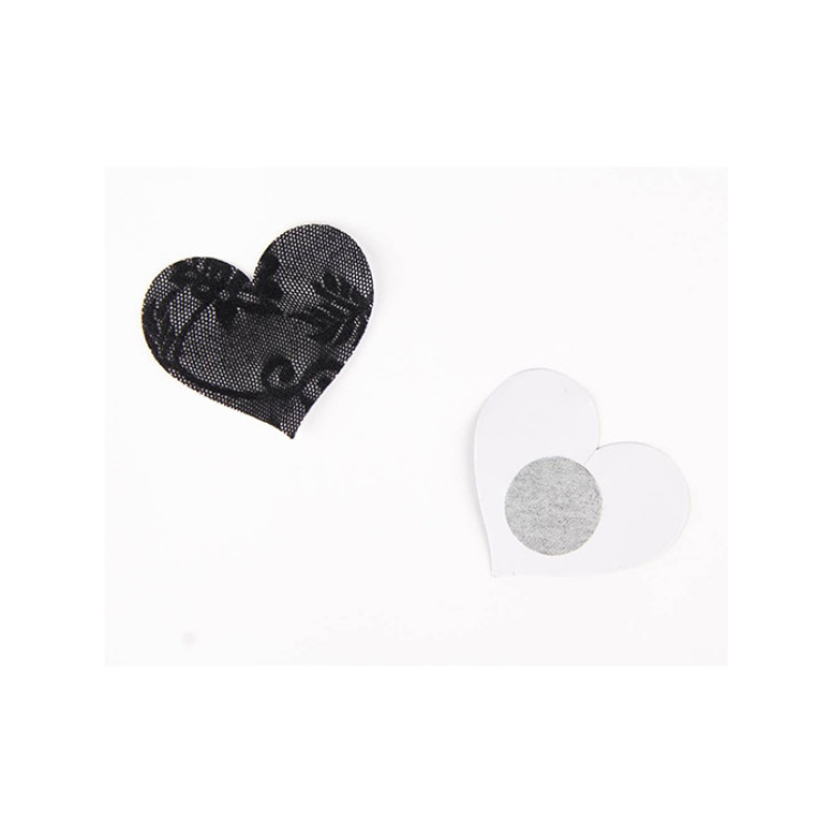 Gi antrekket et sensuelt løft med disse elegante hjerteformede nipple coverene i sort med blondemønser.