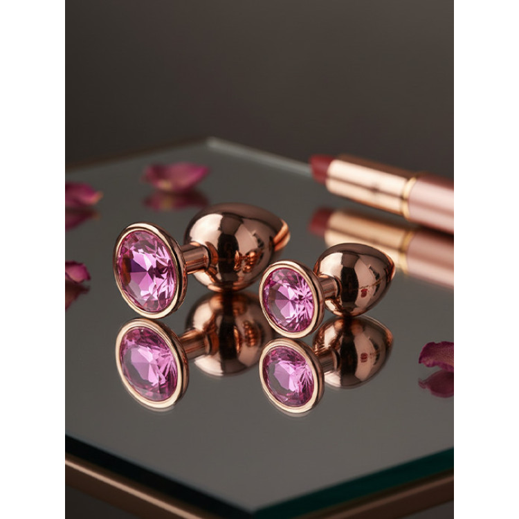 BQS - Buttplugg i rosegull metall med rosa krystall - Small