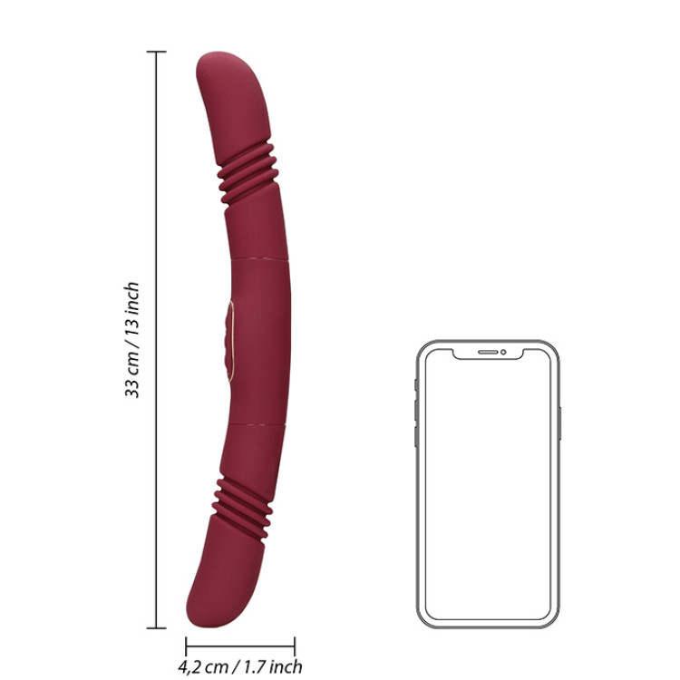 Velg hvilken ende du vil bruke, og la den automatiske thrustingen gjøre jobben. Vibratoren gir dype, rytmiske støt og deilige vibrasjoner samtidig, slik at du får maksimal stimulering uten å løfte en finger.